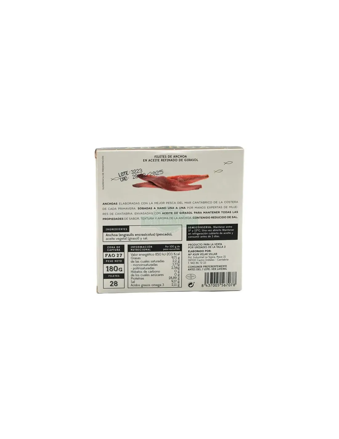 Filetes de anchoa M Pandereta 2 capas, 38 unidades