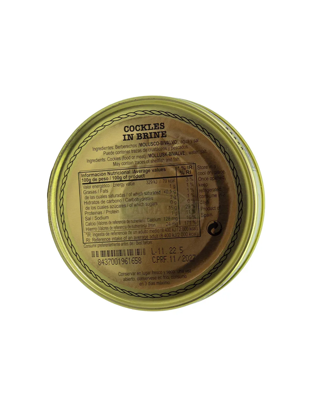 Los Berberechos al Natural en conserva de Los Peperetes son el resultado de una minuciosa selección de las mejores viandas capturadas manualmente por los mariscadores de las Rías Gallegas, únicamente entre Septiembre y Noviembre, época en la que están en su momento óptimo de sabor y de tamaño. Lo que los convierte en unos de los mejores berberechos en conserva del mercado y en nuestro producto más icónico. Una vez recibimos frescos los berberechos en nuestro obrador, los sometemos a un proceso de depuración natural en piscinas de agua de mar. Nuestras expertas empacadoras los manipulan con delicadeza, clasificándolos por tamaños y colocándolos en lata, uno a uno, de forma manual, dando como resultado una presentación impecable. Comprometidos con la sostenibilidad y la pesca artesanal, nuestros berberechos lucen el sello Pesc de Rías, de onde se non? que garantiza el origen, calidad, frescura y captura con artes de pesca sostenibles en Galicia