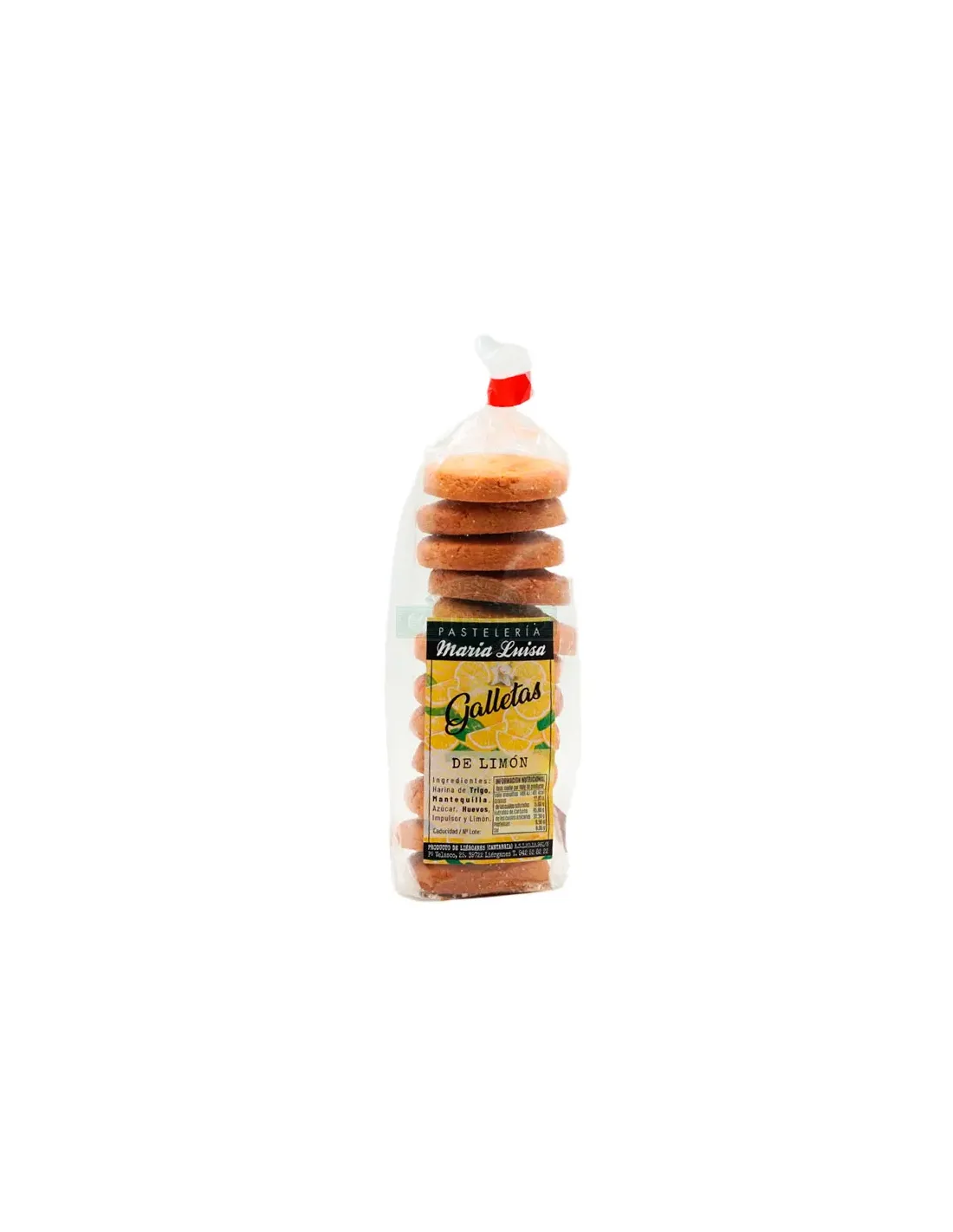 Galletas de Limón y Mantequilla de Pasteleria Maria Luisa. Hechas a base de Limón, Mantequilla, Harina de Trigo, Azúcar e impulsor.