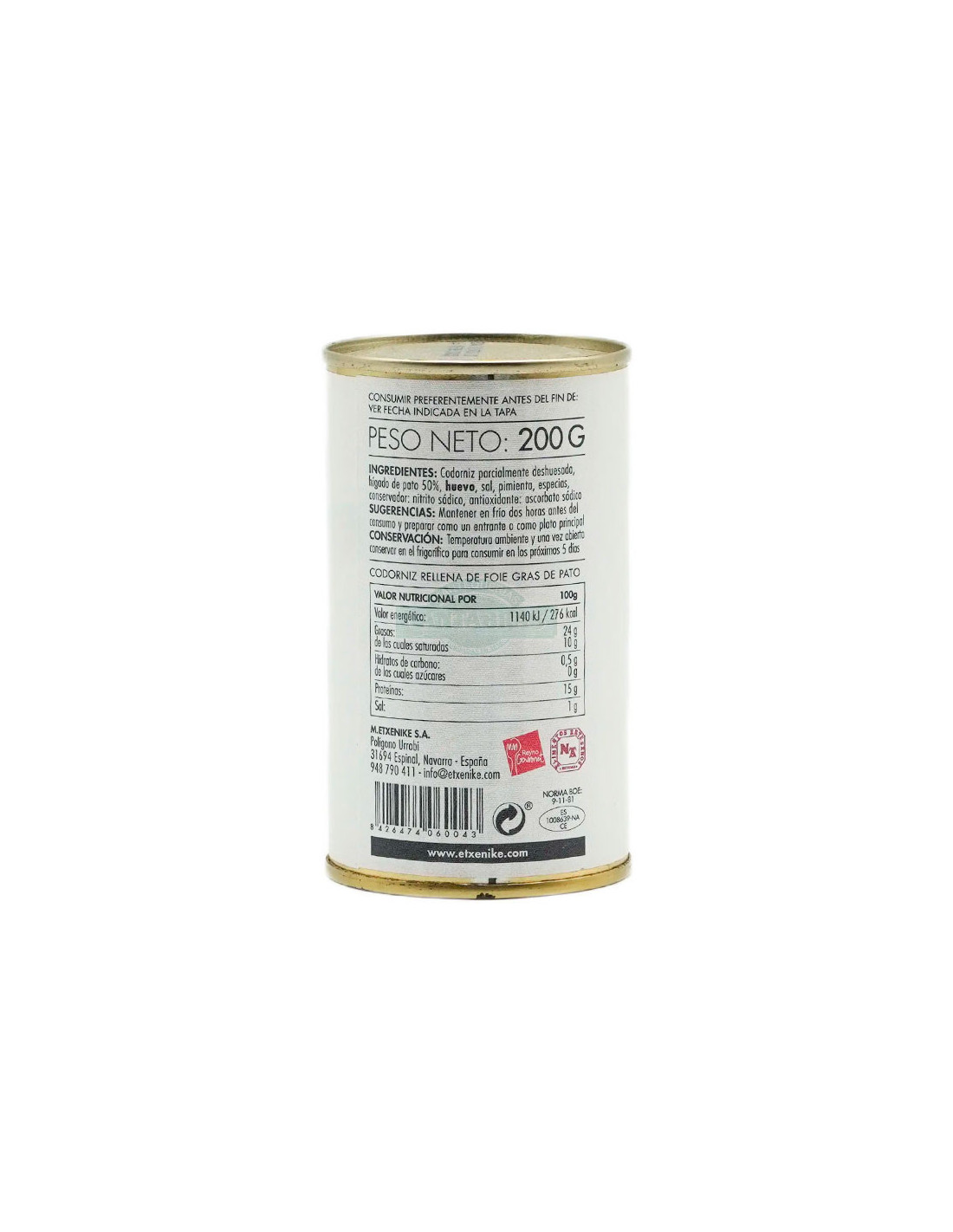 Codorniz deshuesada, con un toque de plancha y rellena de foie gras de pato. Condimentada con sal y pimienta. Su elaboración totalmente artesanal y natural conserva todo el sabor, aroma y color de la materia prima.