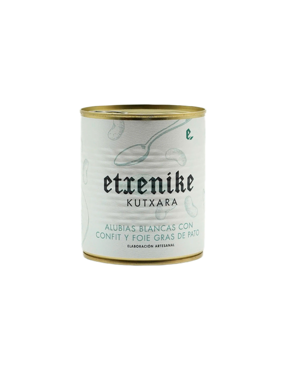 Elaboradas de manera tradicional primero a remojo en agua fría y cocinadas a fuego lento manteniendo un hervor suave durante dos horas y media aproximadamente. Las alubias de un intenso color blanco, acompañado de confit y foie gras de pato crean una salsa blanquecina y untuosa de excelente sabor y aroma a foie gras.